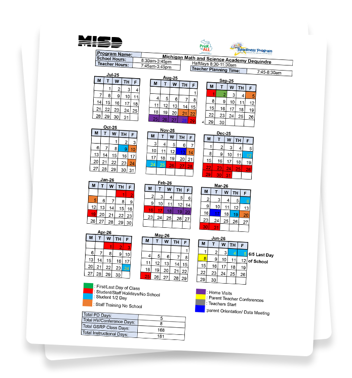 There’s plenty happening at Michigan Math and Science Academy Dequindre! Check out our calendar to see what we have planned throughout the school year.